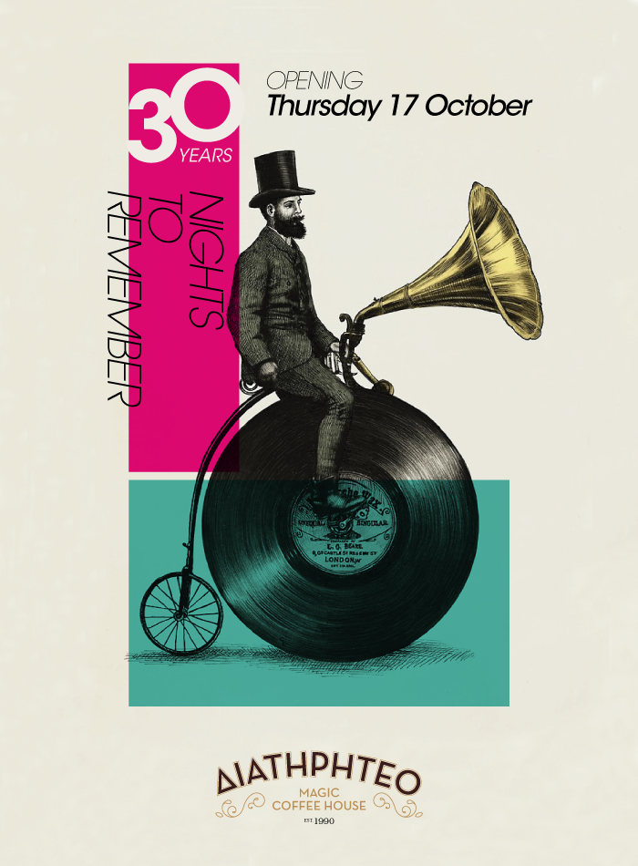 Τριάντα χρόνια συνεχούς λειτουργίας του ΔΙΑΤΗΡΗΤΕΟΥ classic cafe-bar στον πρώτο όροφο της Ικτίνου, συμπληρώνονται φέτος και η σεζόν που ανοίγει την Πέμπτη 17 Οκτωβρίου θα είναι ακόμα πιο μαγική από τις ήδη συγκλονιστικές που προηγήθηκαν εδώ και τρεις δεκαετίες.