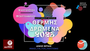 Ένας αγαπημένος θεσμός ο οποίος διοργανώνεται κάθε τέλος καλοκαιριού αποτελώντας ένα μοναδικό καλλιτεχνικό, ψυχαγωγικό, παραδοσιακό αλλά και εκπαιδευτικό γεγονός, δίνει και φέτος δυναμικό «παρών». Πρόκειται για τα «Θέρμης Δρώμενα 2023» τα οποία διοργανώνονται από τη Δημοτική Κοινωφελή Επιχείρηση Πολιτισμού, Περιβάλλοντος και Αθλητισμού Θέρμης (Δ.Ε.Π.Π.Α.Θ.) , υπό την αιγίδα του Δήμου Θέρμης, με τη βοήθεια των Πολιτιστικών και Αθλητικών Συλλόγων. Τα «Θέρμης Δρώμενα» φιλοξενούν φέτος περισσότερες από 65 εκδηλώσεις, μέσα σε διάστημα περίπου πενήντα ημερών, σε κάθε Κοινότητα του Δήμου, στοχεύοντας τόσο στην αποκέντρωση όσο και στη συνέργεια φορέων.