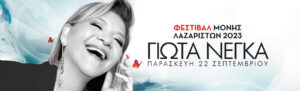 Η Γιώτα Νέγκα από τις σημαντικότερες λαϊκές φωνές της Ελλάδας, συμμετέχει στο Φεστιβάλ Μονής Λαζαριστών 2023 στη Θεσσαλονίκη και ανακοίνωσε τη νέα ημερομηνία της συναυλίας της, την Παρασκευή 22 Σεπτεμβρίου 2023, στον ίδιο χώρο.