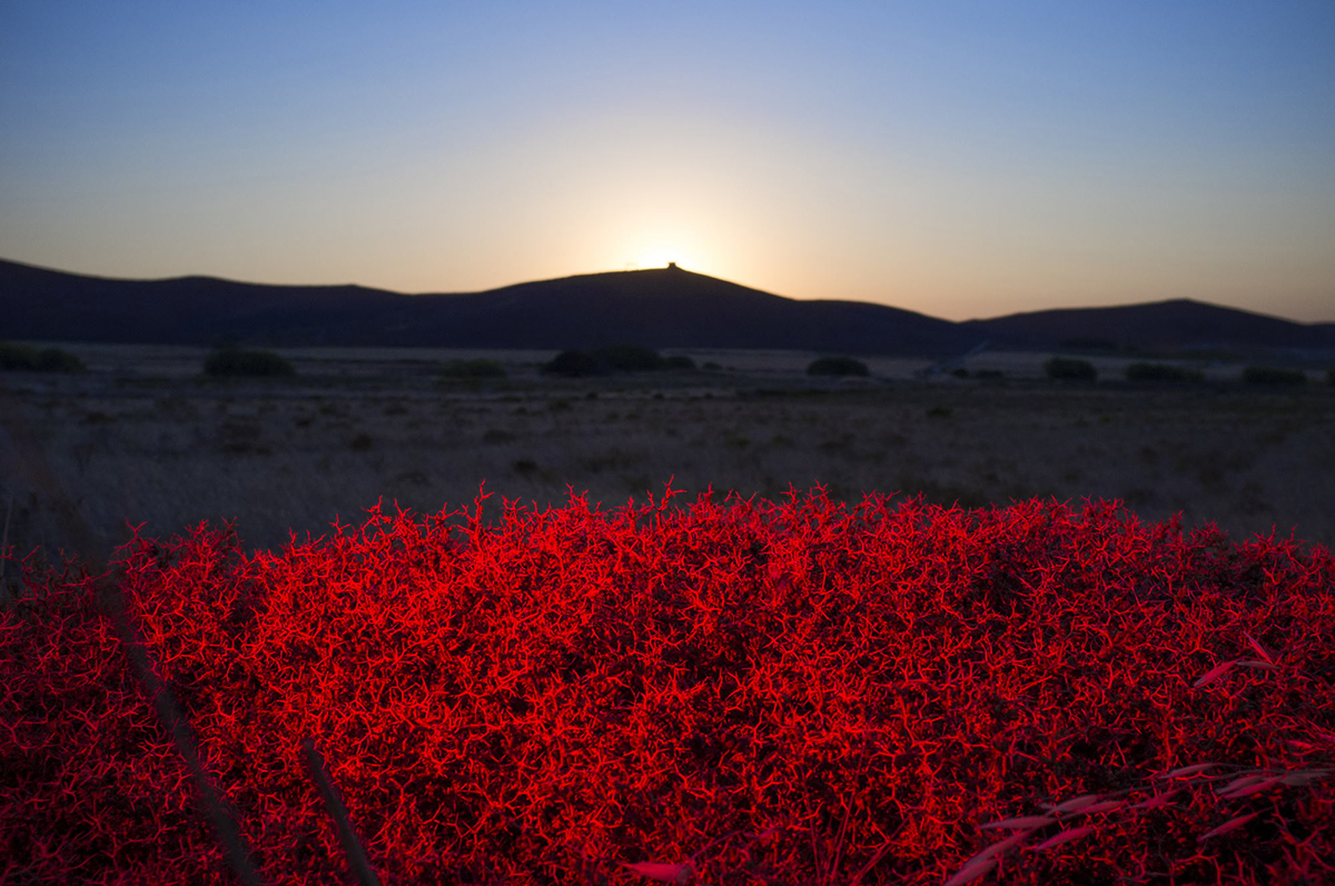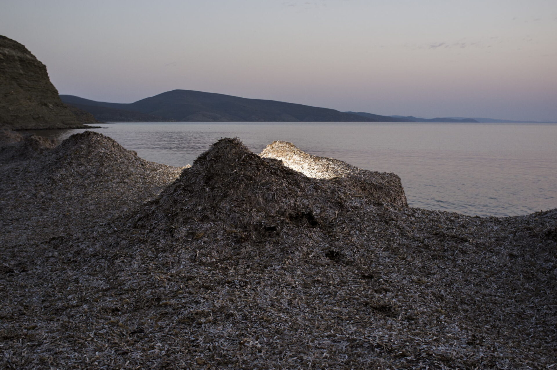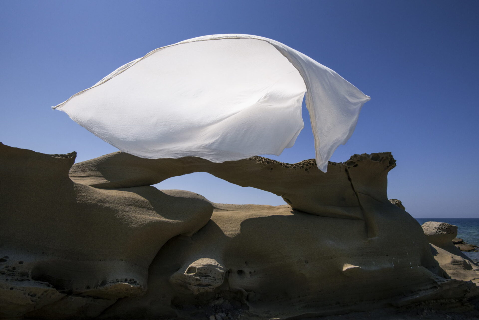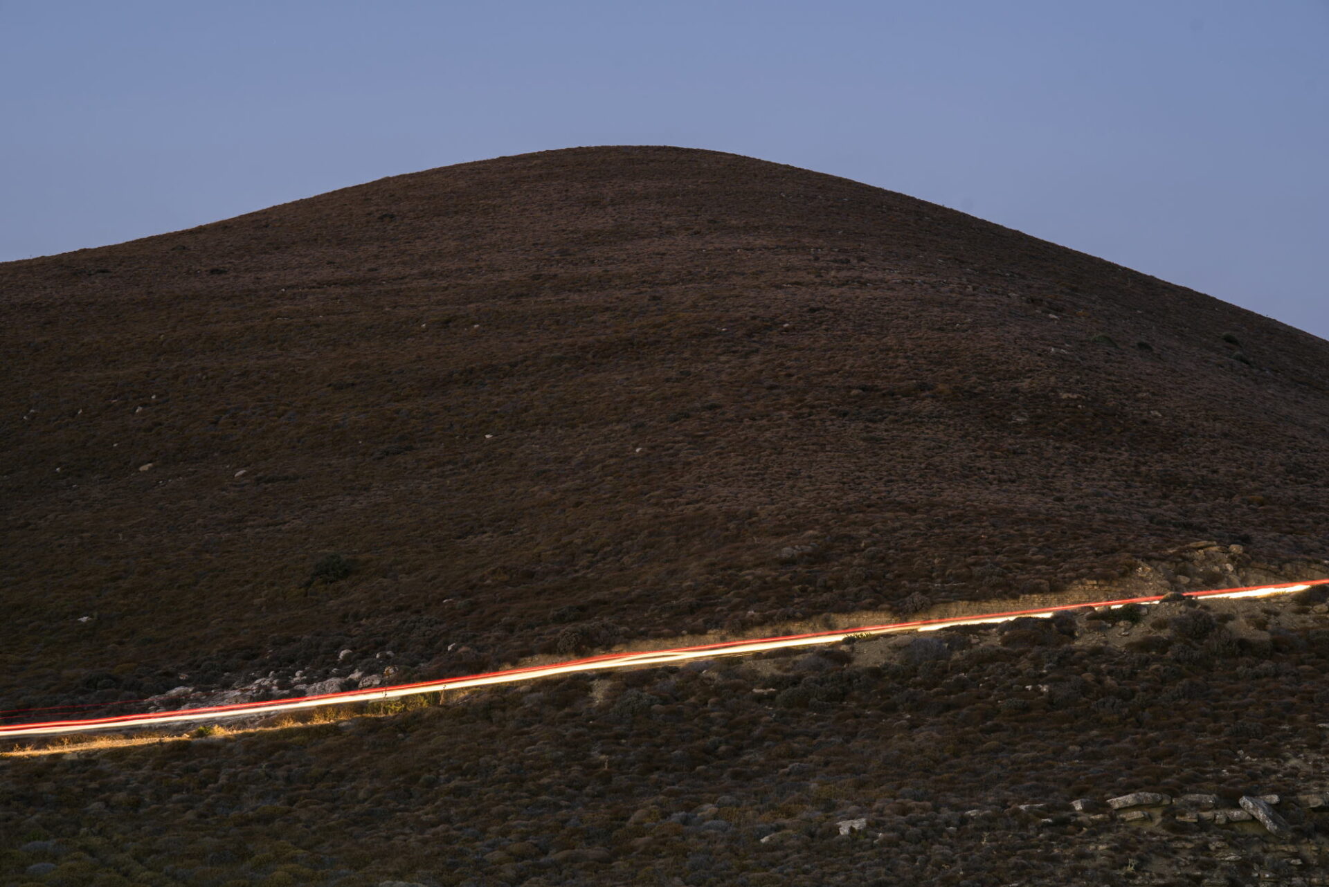 Είτε είναι τα βουνά από φύκια στις παραλίες του νησιού, είτε είναι το φως που γλύφει τους ήπιους ορεινούς όγκους, το απέραντο του κάμπου που διακόπτεται από τις αστοιβιές και τα χιλιοπατημένα μονοπάτια, είτε είναι το εκτυφλωτικό λευκό στην Αλυκή και η απελευθερωτική ροή της άμμου στις ‘Αμμ’δες, είτε τέλος η ανθρώπινη παρουσία-απουσία. Αυτή δεν χρειάζεται να τη δεις για να την αισθανθείς, είναι εκεί, εκλεπτυσμένα, γλυκά, ευγενικά, συγκινητικά. Δεν επιβάλλεται, αλλά συνυπάρχει με σεβασμό και συχνά δέος στα φυσικά στοιχεία: το φως, τον αέρα, τη γη, το νερό.