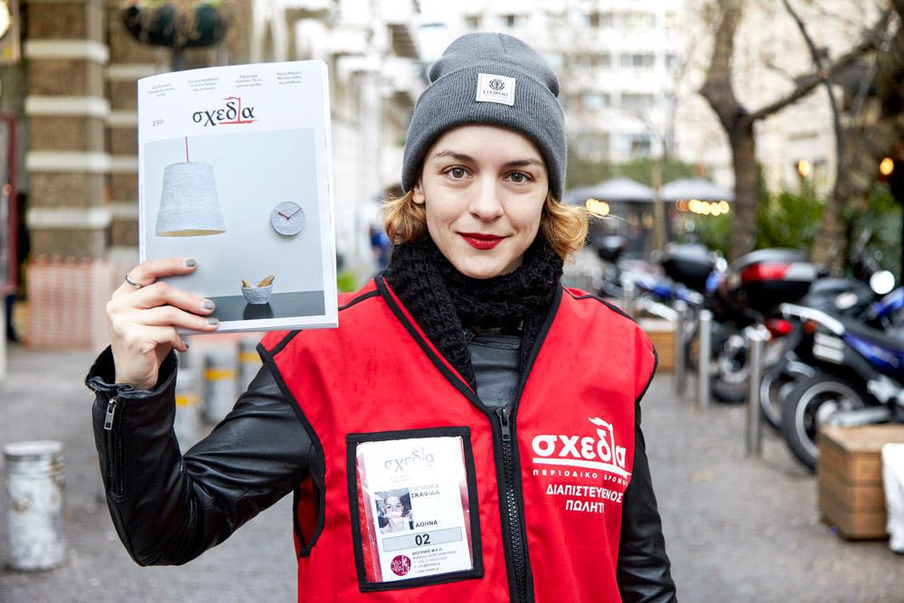 Στην Αθήνα, το γιλέκο της «σχεδίας» θα φορέσουν ο συγγραφέας και Πρόεδρος του Εφορευτικού Συμβουλίου της Εθνικής Βιβλιοθήκης Σταύρος Ζουμπουλάκης (έξω από το Βαλλιάνειο κτίριο επί της οδού Πανεπιστημίου που στέγαζε την Εθνική Βιβλιοθήκη), τα μέλη του μουσικού σχήματος Locomondo (στην έξοδο του Μετρό της πλατείας Συντάγματος), οι ηθοποιοί Αλεξάνδρα Αϊδίνη (πλατεία Αγίας Ειρήνης), Γιώργος Κοντοπόδης (Μετρό Ακρόπολη), Γιώργος Κοτανίδης (στη λαϊκή αγορά των Εξαρχείων, επί της οδού Καλλιδρομίου), Γιούλικα Σκαφιδά (οδός Βουκουρεστίου & Πανεπιστημίου), Μαρίσσα Τριανταφυλίδου (πλατεία Καπνικαρέας), Αιμίλιος Χειλάκης (οδός Ερμού), οι δημοσιογράφοι και παρουσιαστές Γιώργος Λέντζας (πλατεία Μοναστηράκι) και Έλενα Παπαδημητρίου (Μετρό Μοναστηράκι, έξοδος Αθηνάς), η δημοσιογράφος Μάγια Τσόκλη (πλατεία Κοραή), αλλά και το αχώριστο δίδυμο από την εκπομπή του ραδιοφωνικού σταθμού 9.84, Ντάμες Σπαθί, οι αγαπημένες φίλες της «σχεδίας» δημοσιογράφοι Ελευθερία Κουμάντου και Ελεωνόρα Ορφανίδου, άρτι βραβευθείσες μάλιστα από το Ίδρυμα Μπότση. Η Ελευθερία και η Ελεωνόρα θα βρίσκονται έξω από τα καινούρια γραφεία της «σχεδίας», Κολοκοτρώνη 56 και Νικίου 2, εκεί όπου, μεταξύ άλλων, είναι και το φημισμένο Booze Cooperativa, όπου από τις 2 Φεβρουαρίου πραγματοποιείται η έκθεση υποβρύχιας φωτογραφίας «Σιωπή – Η αναπνοή του νου» της Ρενέ Ρεβάχ. Τα έσοδα, μάλιστα, από τις πωλήσεις των έργων θα διατεθούν για τους σκοπούς του ελληνικού περιοδικού δρόμου).