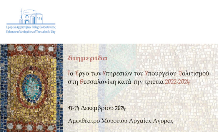 «Το Έργο των Υπηρεσιών του Υπουργείου Πολιτισμού στη Θεσσαλονίκη κατά την τριετία 2022-2024» που διοργανώνει με τη συμμετοχή της Εφορείας Αρχαιοτήτων Περιφέρειας Θεσσαλονίκης και της Υπηρεσίας Νεωτέρων Μνημείων και Τεχνικών Έργων Κεντρικής Μακεδονίας.