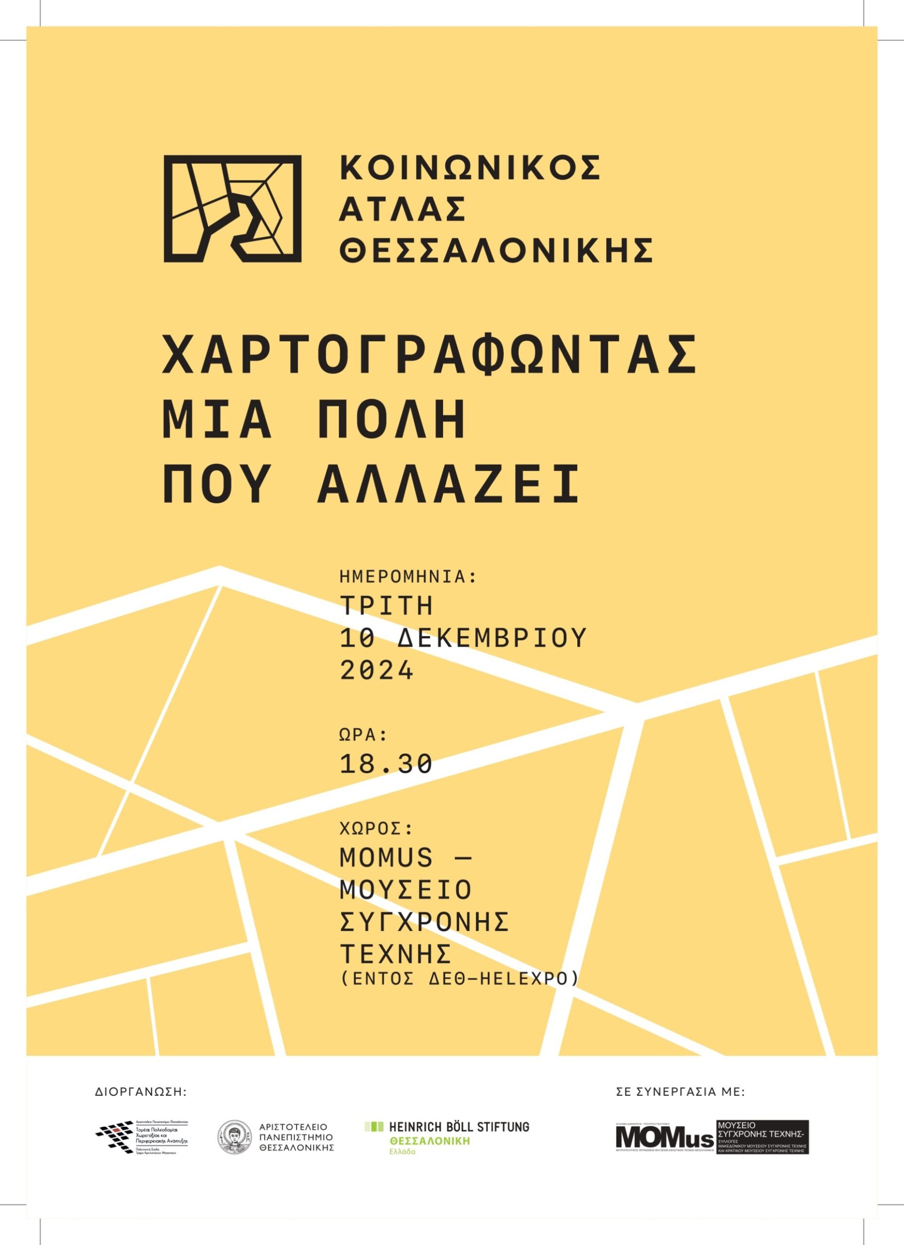 Ένα νέο εγχείρημα για τη Θεσσαλονίκη με μοναδικά χαρακτηριστικά ξεκινά τη λειτουργία του και εγκαινιάζεται με την εκδήλωση «Χαρτογραφώντας μια πόλη που αλλάζει», την Τρίτη 10 Δεκεμβρίου 2024 στις 18:30, στο Αμφιθέατρο «Ξανθίππη Χόιπελ» του ΜΟΜus-Μουσείου Σύγχρονης Τέχνης (εντός ∆ΕΘ-Helexpo).