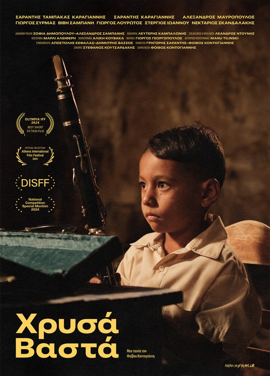 Προβολή της βραβευμένης ταινίας μικρού μήκους «Χρυσά Βαστά» του σκηνοθέτη Φοίβου Κοντογιάννη. Ευχαριστούμε πολύ τον Γρηγόρη Σαράντη και τον Φοίβο Κοντογιάννη για την δωρεάν παραχώρηση της ταινίας.