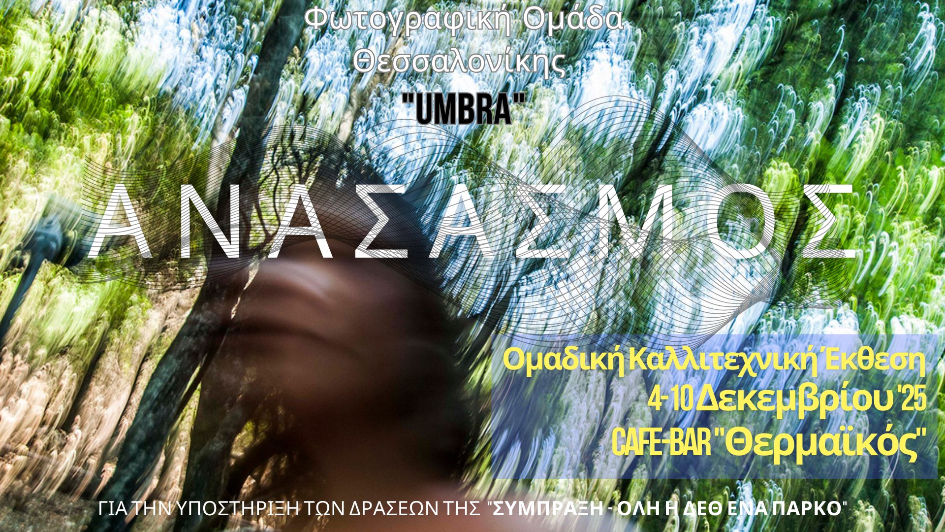 Η Φωτογραφική Ομάδα Θεσσαλονίκης “UMBRA”, σε συνέχεια του ανοιχτού καλέσματος “Όλη η ΔΕΘ ένα Πάρκο – Το Οξυγόνο που μας λείπει” και την φωτογραφική έκθεση “Για το Μητροπολιτικό μας Πάρκο” στο 26ο Αντιρατσιστικό Φεστιβάλ Θεσσαλονίκης, παρουσιάζει την ομαδική έκθεση φωτογραφίας «Ανασασμός», στο καφέ μπαρ “Θερμαϊκός”, από τις 4 έως τις 10 Δεκεμβρίου 2025.