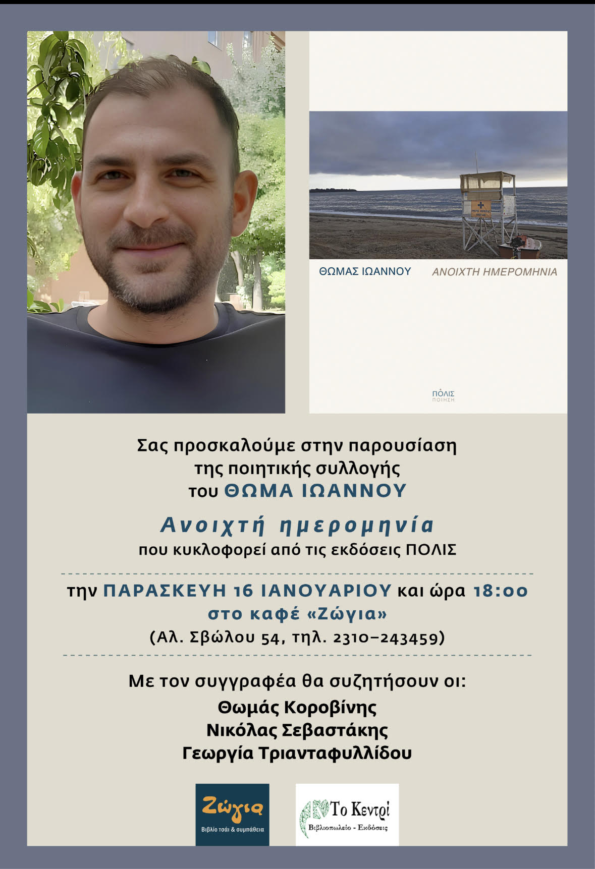 Παρουσίαση ποιητικής συλλογής «Ανοιχτή ημερομηνία» του Θωμά Ιωάννου | Ζώγια
