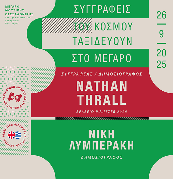 Για πρώτη φορά στην Ελλάδα, ο βραβευμένος με Pulitzer συγγραφέας Nathan Thrall θα βρεθεί στην σκηνή του Μεγάρου Μουσικής Θεσσαλονίκης, σημαίνοντας την έναρξη του τέταρτου κύκλου εκδηλώσεων «Συγγραφείς του Κόσμου ταξιδεύουν στο Μέγαρο», με τον καλύτερο δυνατό τρόπο.