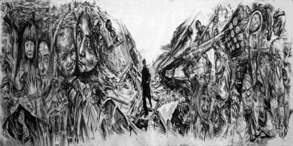 O καλλιτέχνης παρουσιάζει μια σειρά αφηρημένων έργων με μελάνι, τα οποία αναδύονται μέσα από τον αυθορμητισμό της χειρονομίας και την πειθαρχία της σύνθεσης συνδυάζοντας την παραδοσιακή καλλιγραφία με σύγχρονο σχεδιασμό. Κάθε έργο δημιουργείται από μία ή επαναλαμβανόμενες κινήσεις—μια ενστικτώδη πράξη που εξευγενίζεται μέσω της εξάσκησης και της επανάληψης.