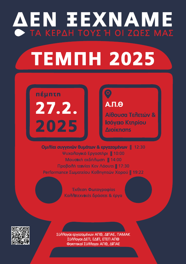«Τέμπη 2025: ΔΕΝ ΞΕΧΝΑΜΕ. ΤΑ ΚΕΡΔΗ ΤΟΥΣ Ή ΟΙ ΖΩΕΣ ΜΑΣ» στο ΑΠΘ