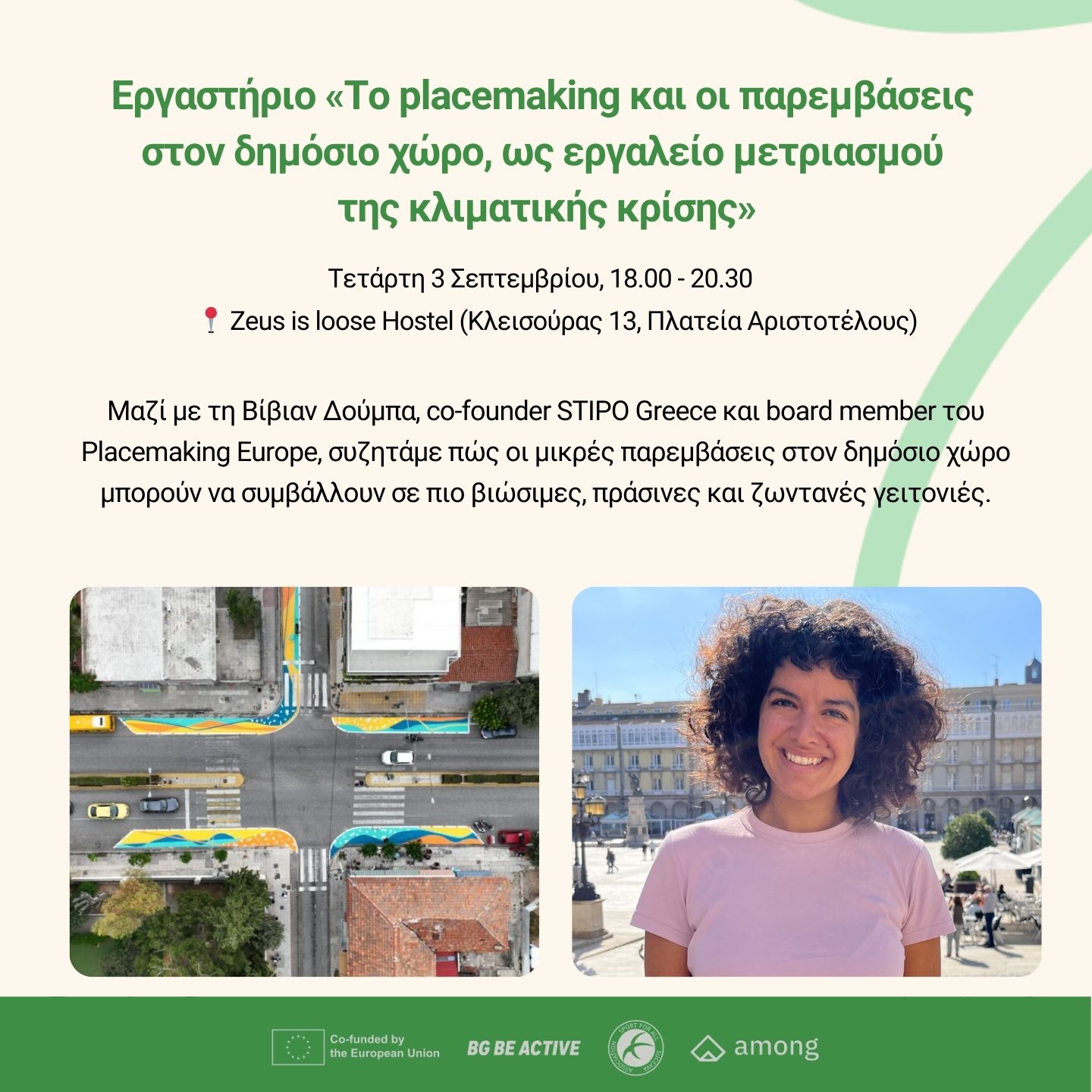 Μαζί με τη Βίβιαν Δούμπα, co-founder STIPO Greece και board member του Placemaking Europe, συζητάμε πώς οι μικρές παρεμβάσεις στον δημόσιο χώρο μπορούν να συμβάλλουν σε πιο βιώσιμες, πράσινες και ζωντανές γειτονιές.