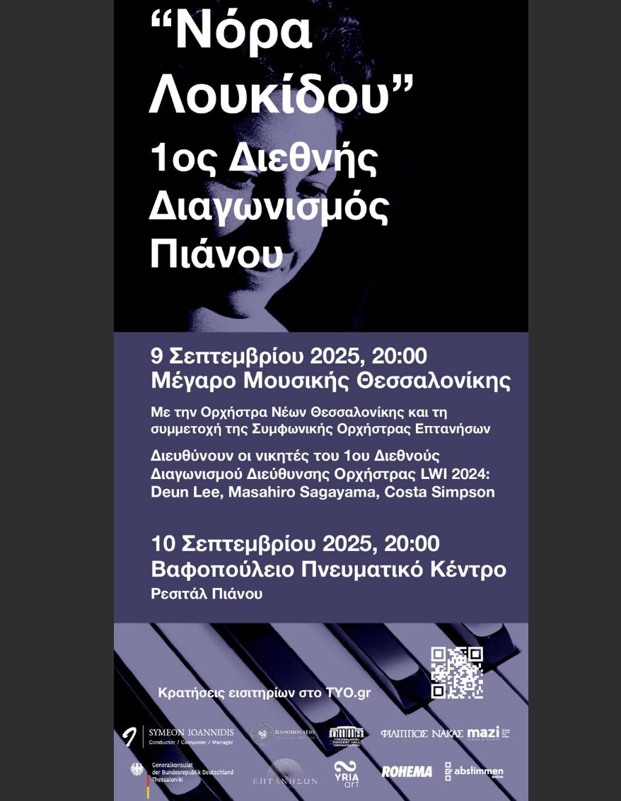 Το Βαφοπούλειο Πνευματικό Κέντρο στο πλαίσιο της συνεργασίας και στήριξης του 1ου Διεθνούς Διαγωνισμού Πιάνου «Νόρα Λουκίδου», που διοργανώνεται στη μνήμη της διακεκριμένης πιανίστριας και παιδαγωγού (6-9 Σεπτεμβρίου 2025), θα υποδεχθεί την Τετάρτη 10 Σεπτεμβρίου 2025 τους τρεις βραβευθέντες του διαγωνισμού, οι οποίοι θα παραθέσουν ρεσιτάλ πιάνου.