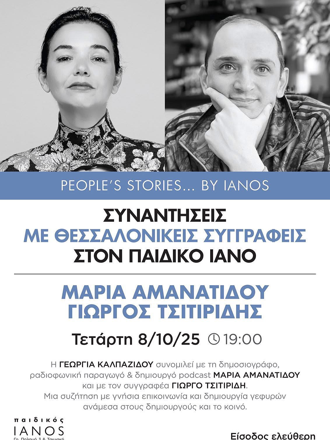 Ο IANOS παρουσιάζει μια ξεχωριστή λογοτεχνική εκδήλωση που καταρρίπτει τα στερεότυπα των παραδοσιακών παρουσιάσεων βιβλίων. Στο “People’s Stories… by IANOS’’ γίνεται η αρχή ενός κύκλου συναντήσεων Θεσσαλονικέων συγγραφέων όπου μέσα από μία χαλαρή κουβέντα, τους γνωρίζουμε αλλά και ενώνουμε τις ιστορίες τους. Η Μαρία Αμανατίδου (συγγραφέας της συλλογής “My HERoines – Μικρές ιστορίες, μεγάλες ηρωίδες”, Εκδόσεις Νίκας) και ο Γιώργος Τσιτιρίδης (συγγραφέας του βιβλίου “Το Τσιγγάνικο Παραμύθι”, Εκδόσεις Μέθεξις) θα συναντηθούν σε έναν ανοιχτό διάλογο για τις ιστορίες που τους συνδέουν μεταξύ τους…..αλλά και με το αναγνωστικό κοινό. Σε ένα περιβάλλον φιλικό και χαλαρό, με ένα ποτήρι κρασί, οι δύο συγγραφείς θα μοιραστούν τις προσωπικές τους ιστορίες, από τη συγγραφική διαδρομή και τις αφηγήσεις που τους έχουν σημαδέψει. Θα φέρουν στη συζήτηση τις εμπειρίες τους από τη διατήρηση και προώθηση διαφορετικών παραδόσεων και φωνών, τον αγώνα κατά των στερεοτύπων και τη δύναμη των ιστοριών που ενώνουν τους ανθρώπους – είτε μιλάμε για την τσιγγάνικη κουλτούρα, είτε για τις σύγχρονες ηρωίδες της καθημερινότητας. Μακριά από τις τυπικές μορφές παρουσίασης, η εκδήλωση στοχεύει στη γνήσια επικοινωνία και στη δημιουργία γεφυρών ανάμεσα στους δημιουργούς και το κοινό. Το “People’s Stories… by IANOS” αποτελεί μια πρόσκληση σε όλους όσοι αγαπούν τη λογοτεχνία, έτσι ώστε να ανακαλύψουν τις κοινές ιστορίες που μας ενώνουν ως ανθρώπους, πέρα από κάθε στερεότυπο και προκατάληψη. Οι Συμμετέχοντες Συγγραφείς Μαρία Αμανατίδου Δημοσιογράφος, ραδιοφωνική παραγωγός και δημιουργός του podcast “My HERoines – Οι ηρωίδες μου”. Ζει στη Θεσσαλονίκη και έχει εκδώσει πολλά βιβλία, με το πιο πρόσφατο να είναι η συλλογή “My HERoines – Μικρές ιστορίες, μεγάλες ηρωίδες” (εκδόσεις Νίκας). Στο βιβλίο της εξερευνά τις ιστορίες γυναικών της καθημερινότητας που αψηφούν τα στερεότυπα και ανακαλύπτουν τη δύναμη της γυναικείας τους φύσης. Γιώργος Τσιτιρίδης Συγγραφέας του βιβλίου “Το Τσιγγάνικο Παραμύθι” (εκδόσεις Μέθεξις), μια συλλογή παραμυθιών, δοξασιών και μύθων που συνέλεξε από κατοίκους διαφόρων περιοχών της Ελλάδας. Το έργο του αποτελεί σημαντική προσπάθεια διατήρησης της προφορικής παράδοσης των Ρομά, καταγράφοντας ιστορίες που σιγά-σιγά χάνονται από τη μνήμη των κοινοτήτων. Την συζήτηση συντονίζει η: Γεωργία Καλπαζίδου Φιλόλογος γλωσσολόγος, ασχολείται με τους τομείς της εκπαίδευσης και της κοινωνικής ένταξης περιθωριοποιημένων κοινοτήτων Ρομά. Από το 2021 αποτελεί ιδρυτικό μέλος της ΑΜΚΕ REVMA, που στοχεύει στην άρση των στερεοτύπων προωθώντας την τσιγγάνικη λογοτεχνία και τον γλωσσικό ακτιβισμό. Η ποιητική της συλλογή “Με Σεμ” (εκδόσεις Κύκνος) αποτελεί μια πρωτοποριακή προσπάθεια ένταξης της ελληνικής τσιγγάνικης γλώσσας στη λογοτεχνική γραφή. ΚΘΒΕ: «Έγκλημα και Τιμωρία» Φ. Ντοστογιέφσκι στη Θεσσαλονίκη-2ος Χρόνος