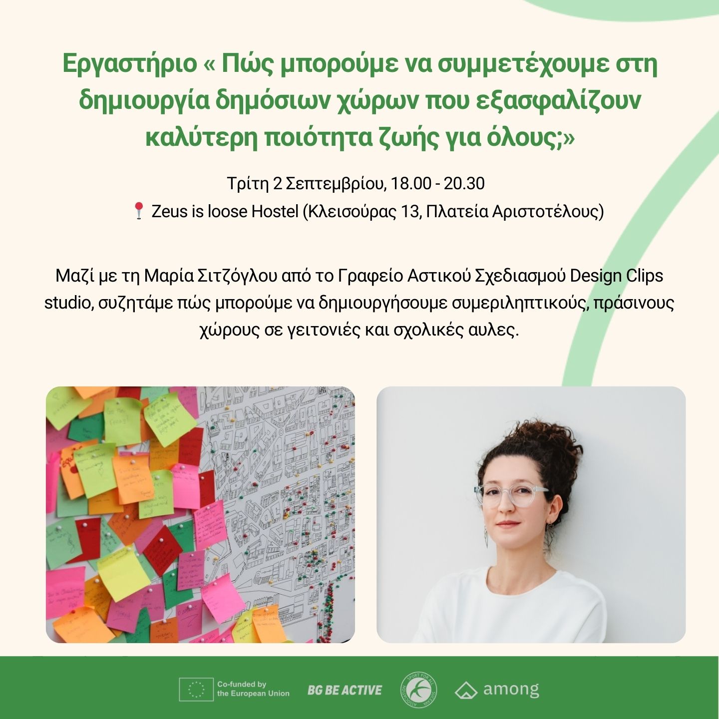 Μαζί με τη Μαρία Σιτζόγλου από το Γραφείο Αστικού Σχεδιασμού Design Clips studio, συζητάμε πώς μπορούμε να δημιουργήσουμε συμπεριληπτικούς, πράσινους χώρους σε γειτονιές και σχολικές αυλές.