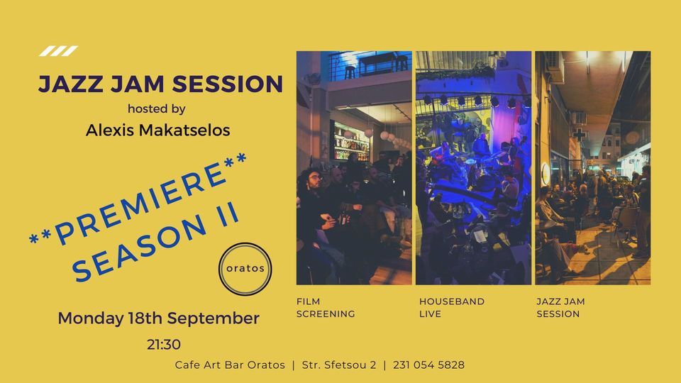 Το Jazz Jam Session συνεχίζεται για δεύτερη χρονιά στον Ορατό! Ένα event αφιερωμένο στη μουσική και την κουλτούρα της Jazz, το οποίο αποτελείται απο προβολή βίντεο της jazz ιστορίας, live μουσική με host και διοργανωτή τον drummer Αλέξη Μακατσέλο και καλεσμένους του… και φυσικά jam session!