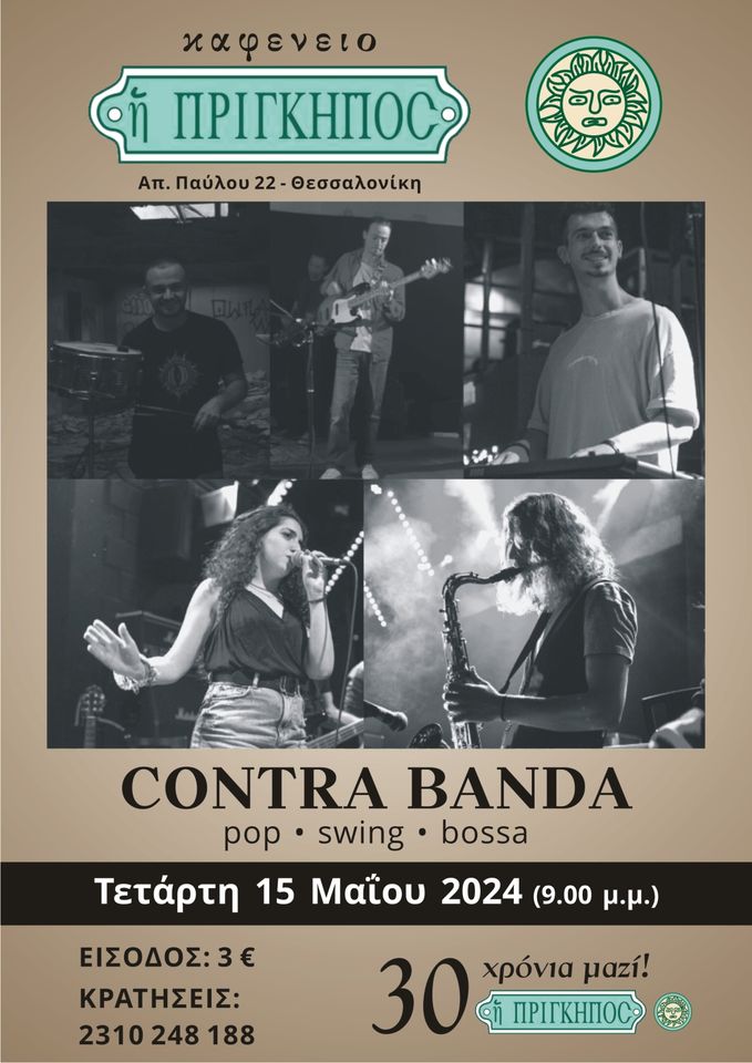 Τετάρτη 15 Μαΐου 2024 στις 21:30 | Οι Contra Banda στην Πρίγκηπο | Είσοδος 3 ευρώ | Κρατήσεις 2310248188
