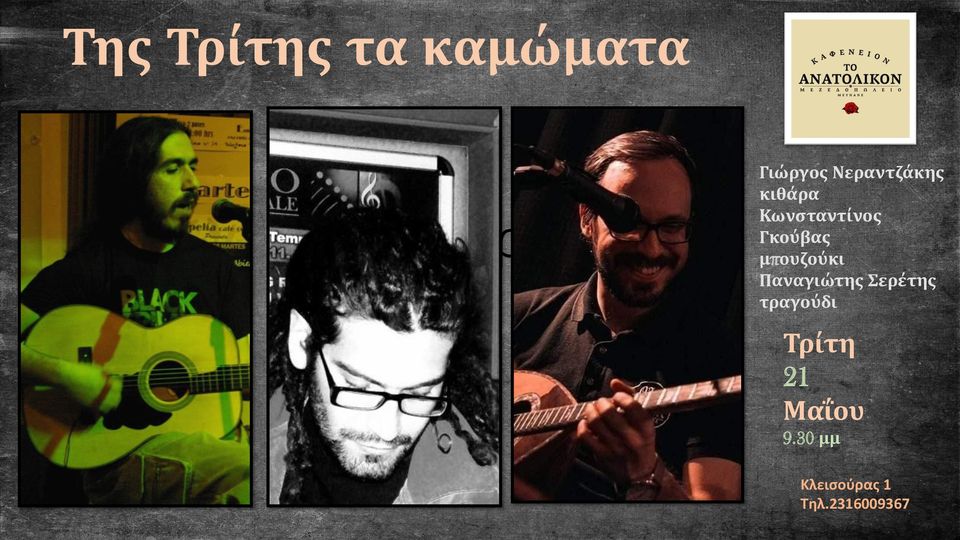 Νίκος Πλούμπης-μπουζούκι | Παναγιώτης Σερέτης-τραγούδι | Γιώργος Νεραντζάκης-κιθάρα