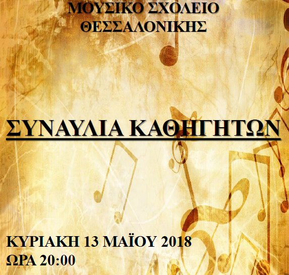 *Την Κυριακή 13 Μαΐου στις 20:00 στο Θέατρο “Θεοπίστη Οσλιανίτου” του Μουσικού Σχολείου Θεσσαλονίκης, είσοδος ελεύθερη, πληροφορίες: 2310 300 828, 2310 300 630