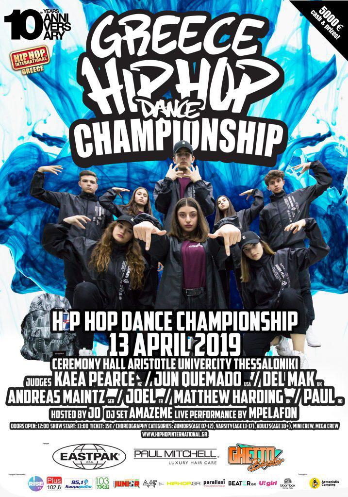 Για 10η συνεχόμενη χρονιά στην Ελλάδα ο προκριματικός του κορυφαίου διαγωνισμού Hip Hop χορογραφίας με τίτλο HipΗop International Greece 2019. Ομάδες από όλες τις πόλεις της Ελλάδος θα διαγωνιστούν παρουσιάζοντας στην κριτική επιτροπή Hip Hop χορογραφίες. Οι επισκέπτες θα παρακολουθήσουν special shows από τους διεθνούς εμβέλειας χορευτές όπου θα είναι κριτές του διαγωνισμού και θα παραδώσουν σεμινάρια χορού. Οι νικητές θα κερδίσουν δώρα αξίας 4000€ και 2000€ στήριξη για το ταξίδι στα τελικά της Αμερικής.
