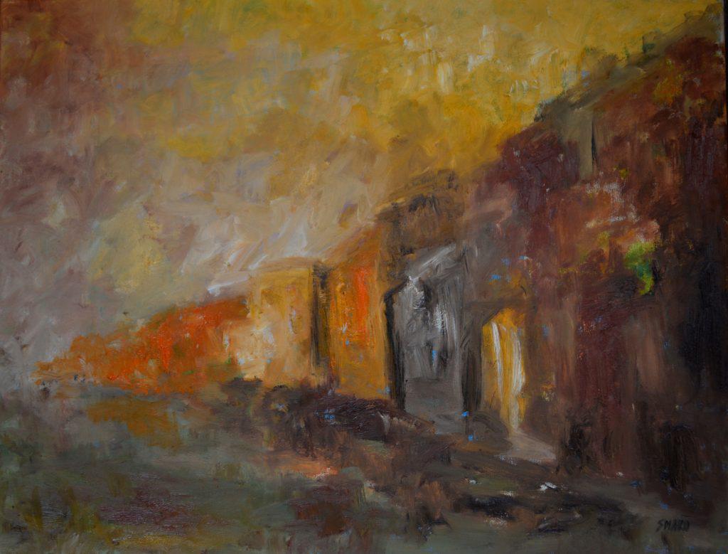 Δεν είναι μόνο οι εικόνες των εμβληματικών ή των τυχαίων σημείων που αποτυπώνονται στη μνήμη μας. Καμιά φορά είναι και μυρωδιές ή εικόνες κινούμενες κάποιας έντονης ή χαρακτηριστικής δραστηριότητας. Είναι και η αίσθηση – εντύπωση των χρωμάτων που εκπέμπει μια πόλη, το χρώμα της πόλης, πραγματικό οπωσδήποτε αλλά ενίοτε αποτέλεσμα του φαντασιακού, δηλαδή συνειρμού της σκέψης ή της μνήμης που έχουμε από αυτήν. Αυτήν ακριβώς την αίσθηση αποτυπώνει στη συγκεκριμένη έκθεση η Σμαρώ Τζενανίδου.