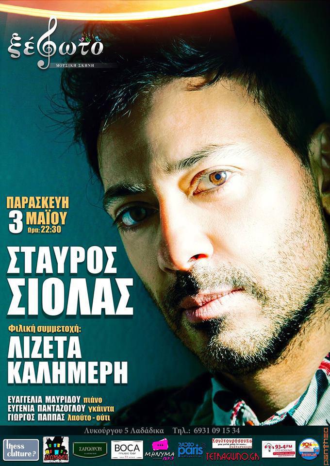 Μια φωνή ιδιαίτερη, φερμένη από αλλού..Ένας τραγουδοποιός ξεχωριστός, με παραδοσιακή μουσική ρίζα αλλά και σύγχρονη αισθητική. Με μια χροιά που αποτελεί ταυτότητα και μια φιλοσοφία που προσδίδει ένα τόσο προσωπικό στίγμα. Ο Σταύρος Σιόλας επιστρέφει στην πόλη που τον ανέδειξε μέσα από το φεστιβάλ τραγουδιού, μόνο για ένα βράδυ, στο ΞΕΦΩΤΟ (Λυκούργου 5, Λαδάδικα), την Παρασκευή 3 Μαίου. Συμμετέχει φιλικά, η Λιζέτα Καλημέρη. Έτσι το «λίγο», γίνεται ξαφνικά πολύ..