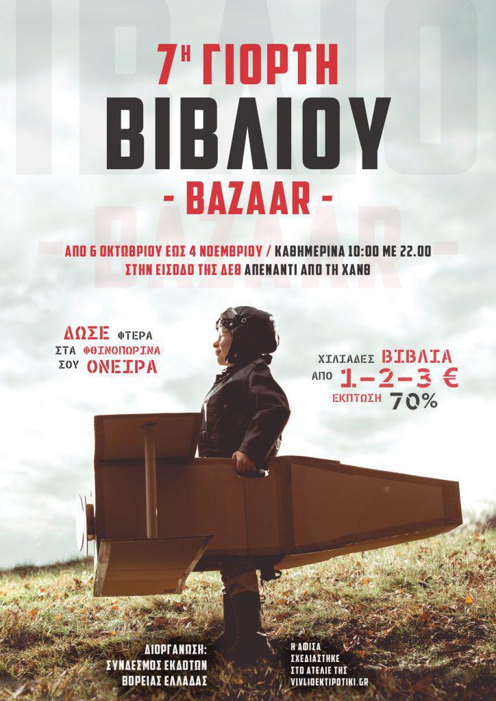 Το μεγαλύτερο Παζάρι Βιβλίου των εκδοτών και με πολλούς νέους τίτλους θα λειτουργεί από τις 6 Οκτωβρίου και έως τις 4 Νοεμβρίου στην Κεντρική Πύλη ΔΕΘ, (είσοδος ΧΑΝΘ). Με την συμμετοχή 200 εκδοτών από όλη την Ελλάδα και με χιλιάδες φθηνά βιβλία που η τιμή πώλησης θα ξεκινά από 1-2-3ευρώ.. και με έκπτωση που αγγίζει το 70% της αρχικής τιμής τους.