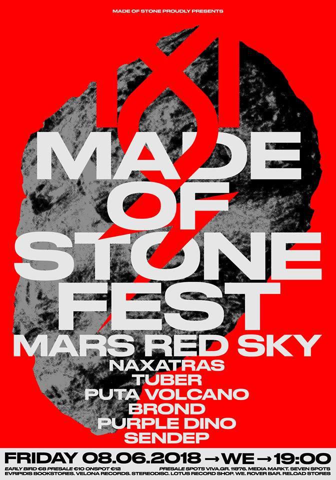 Θα παίξουν τα συγκροτήματα: Mars Red Sky [FRANCE] Naxatras [GREECE] Tuber [GREECE] Puta Volcano [GREECE] BROND [BULGARIA] Purple Dino [GREECE] Sendep -Sensory Deprivation [GREECE]