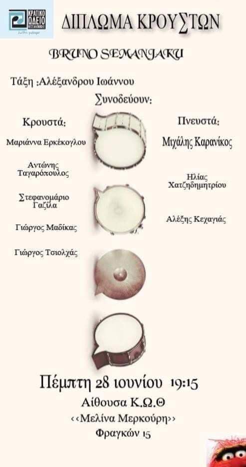 *Την Τρίτη 26/6 στις 15.00 στο Κρατικό Ωδείο Θεσσαλονίκης, Φράγκων 15, είσοδος ελεύθερη