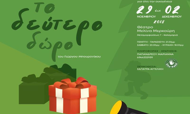 Η θεατρική ομάδα «Όλα Καλά» σε συνεργασία με τον Σύλλογο Γονέων και Κηδεμόνων του Ασύλου του Παιδιού, μετά τις επιτυχημένες sold out παραστάσεις στην πρώτη της εμφάνιση, επιστρέφει και παρουσιάζει «το δεύτερο δώρο», σε κείμενο του Γιώργου Μπουρονίκου και σκηνοθεσία Αγγελικής Σαπάτρα. Η παράσταση ανεβαίνει στο Δημοτικό Θέατρο Καλαμαριάς «Μελίνα Μερκούρη» (Μεταμορφώσεως 7) ενώ τα έσοδα θα δοθούν στον Σύλλογο Γονέων & Κηδεμόνων για τις ανάγκες του σχολείου του Ασύλου του Παιδιού.