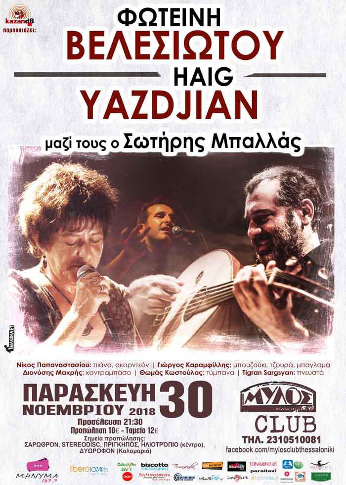 * Την Παρασκευή 30/11 στις 21:30 στο στο Bensousan Han – Μπενσουσάν Χαν, είσοδος με προτεινόμενη συνεισφορά 7 ευρώ