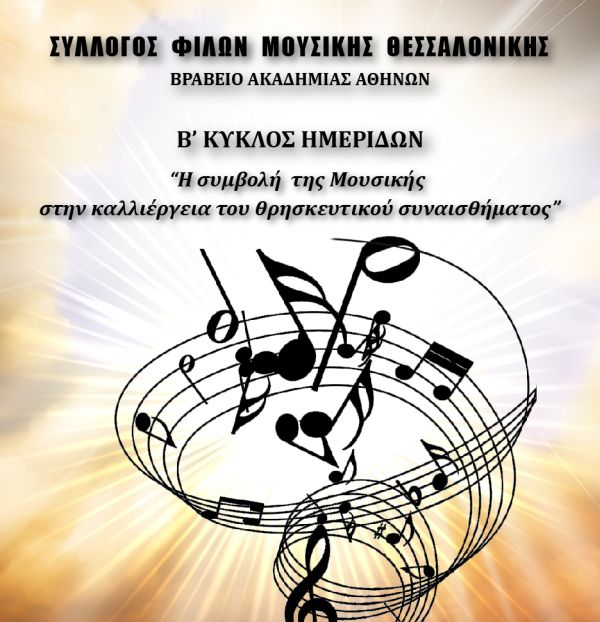 Ο Σύλλογος Φίλων Μουσικής Θεσσαλονίκης, επιθυμώντας να καταδείξει το βαθύ μήνυμα της μυστικής γλώσσας της μουσικής στις ιερότερες στιγμές του ανθρώπου, την ώρα της αυτογνωσίας, της πνευματικής ανάτασης, της προσευχής και της λατρείας, διοργανώνει ημερίδα με θέμα Μουσική και Θρησκευτικό Συναίσθημα, στην οποία ειδήμονες θα αναλύσουν τους δεσμούς της μουσικής με τη θρησκευτικότητα, καλύπτοντας όλο το θρησκειολογικό φάσμα από τις πιο αρχαίες εποχές έως σήμερα.