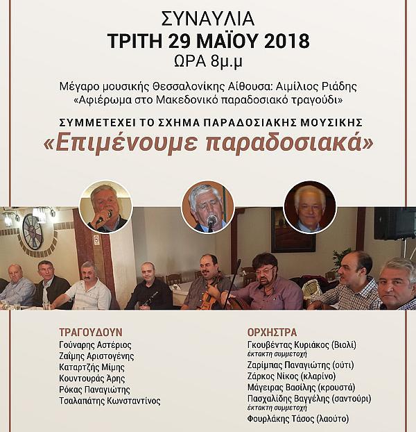Την Τρίτη ΑΦΙΕΡΩΜΑ ΣΤΟ ΜΑΚΕΔΟΝΙΚΟ ΠΑΡΑΔΟΣΙΑΚΟ ΤΡΑΓΟΥΔΙ στο Μέγαρο Μουσικής Θεσσαλονίκης