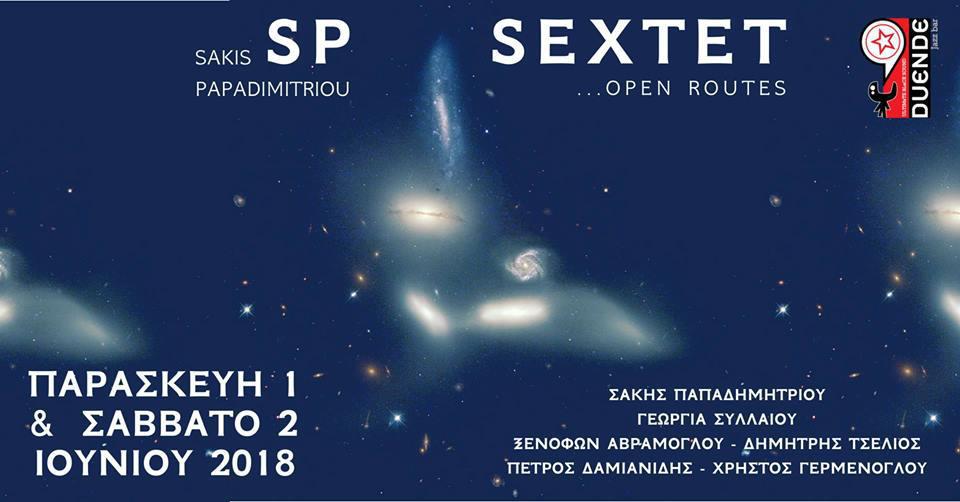 Παρθενική εμφάνιση του S.P. Sextet στο Duende. Συνθέσεις και μουσικές ιδέες του Σάκη Παπαδημητρίου από τη δεκαετία του ’60 μέχρι σήμερα και αυτοσχεδιασμοί των μουσικών. Εκτός από τα κομμάτια με το κουιντέτο, τώρα με την φωνή και τα κείμενα της Γεωργίας Συλλαίου το σεξτέτο παρουσιάζει το “Film noir”, ένα ποίημα του Boris Vian, το τρίπτυχο Satie – Βαμβακάρης – McCoy Tyner και κάποιες εκπλήξεις. Ποίηση του James Joyce, της Σαπφούς, του Bertolt Brecht και του Samuel Beckett. Αναφορά στον Thelonious Monk και τον Steve Lacy.