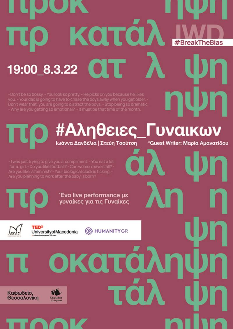 Το ταξίδι στις #Αληθειες_Γυναικων ξεκινά από τη Θεσσαλονίκη στις 8 Μαρτίου, στο Καφωδείο (Βενιζέλου 45), στις 19.00.