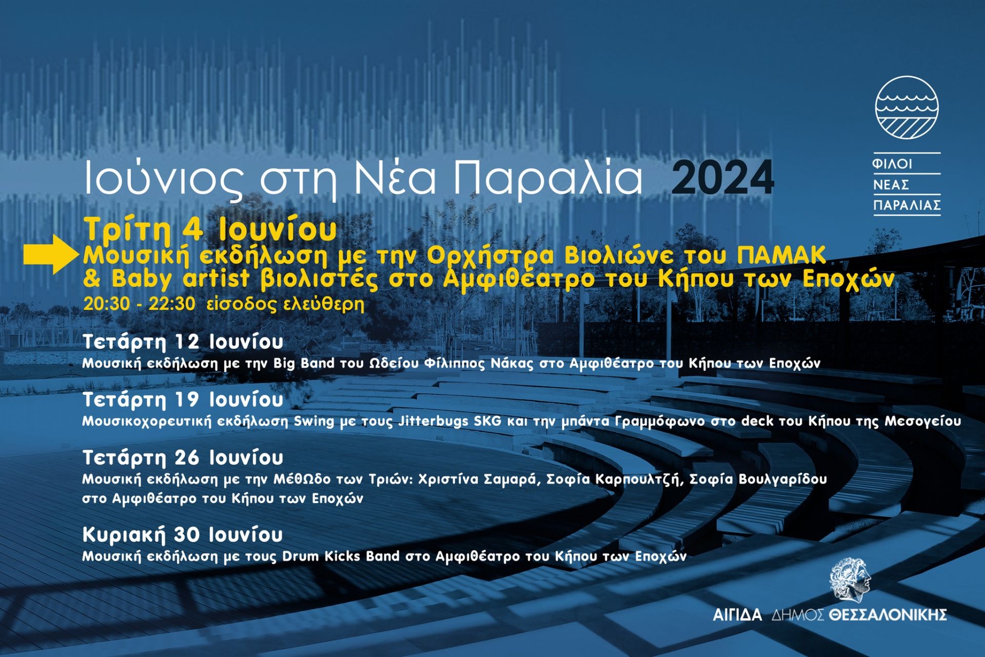 Το ανοιχτό, μουσικό φεστιβάλ «Ιούνιος στη Νέα Παραλία» παρουσιάζει μια ποικιλία σύγχρονων μουσικών ειδών.