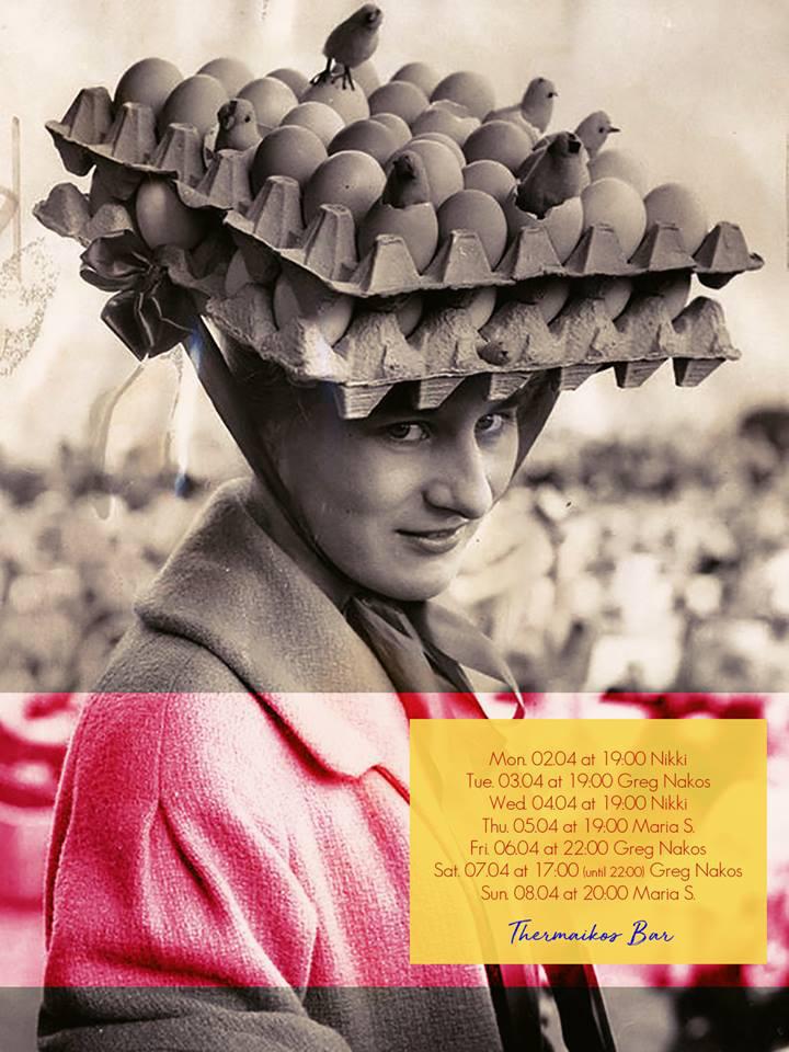 –Μεγάλη Παρασκευή Greg Nakos, στις 22.00 στον Θερμαϊκό και Μεγάλο Σάββατο 17.00- 22.00. Κυριακή του Πάσχα στις 20.00, Maria S.