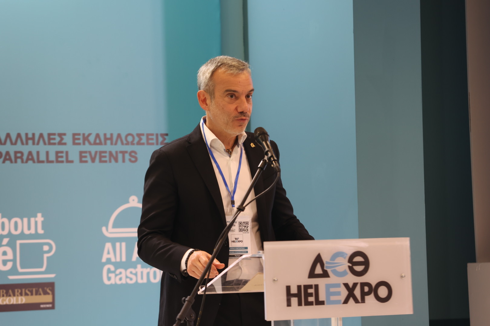 Χαιρετισμό στο Συνέδριο έκανε και ο Γενικός Διευθυντής Εμπορικής και Επιχειρηματικής Ανάπτυξης της Fraport Greece (Χορηγός Φιλοξενίας του Συνεδρίου της Philoxenia), κ. Γιώργος Βήλος.