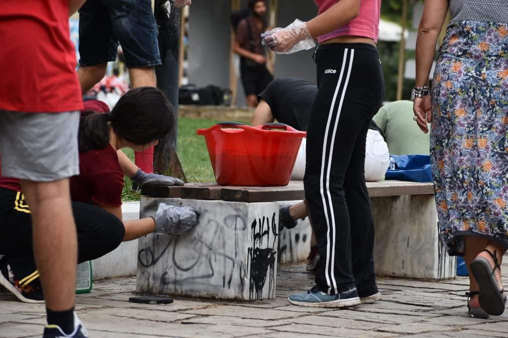 Ταυτόχρονα και σε συνεργασία και με την ActionAid Hellas καθαρίστηκαν επιφάνειες, κάδοι, πεζούλια, ώστε να επιστραφούν ομορφότερα στους χρήστες τους και γενικά στην Πλατεία, όπως της αξίζουν.