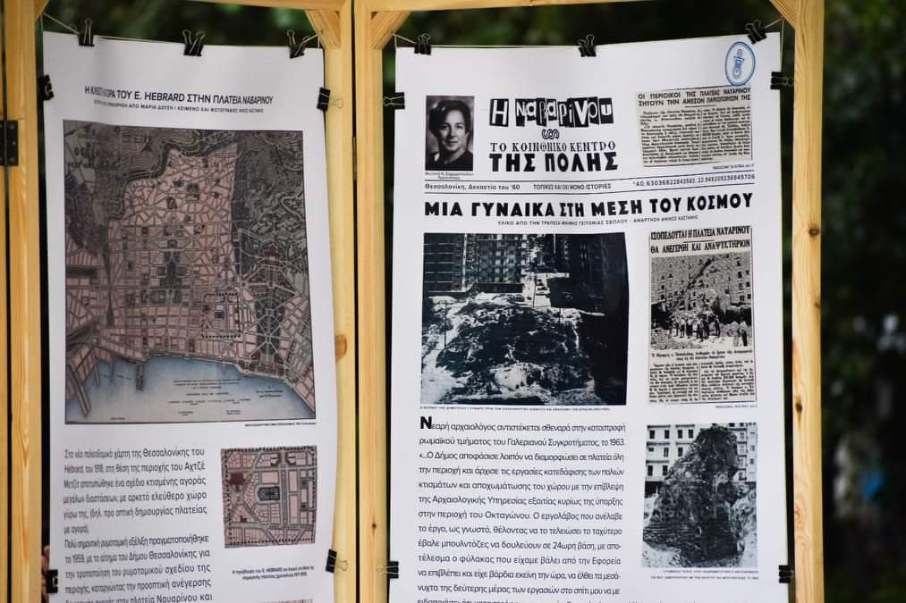 Η γιορτή άνοιξε με μια σύντομη παρουσίαση αποτελεσμάτων εργαστηρίων Παιχνιδιού Τόπου και σύντομους χαιρετισμούς για το εγχείρημα και ακολούθησε η έναρξη τής συμμετοχικής έκθεσης “Τα πρόσωπα της Πλατείας Ναβαρίνου”, μιας έκθεσης που επιχειρεί να προσεγγίσει το παρελθόν, το παρόν και το μέλλον της ευρύτερης περιοχής μέσα από ιστορικά τεκμήρια, κείμενα, φωτογραφίες και σχέδια που έχει παραχωρήσει ο Δήμος Θεσσαλονίκης, το Κέντρο Ιστορίας Θεσσαλονίκης, το ΑΠΘ και σύγχρονοι φωτογράφοι που αποτύπωσαν καθημερινές στιγμές στον δημόσιο βίο της πόλης.