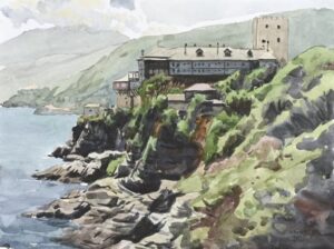 Κωνσταντίνος Κερεστετζής έκθεση “Ακουαρέλες από το Άγιον Όρος” | Αγιορείτικη εστία, κτίριο Νεδέλκου