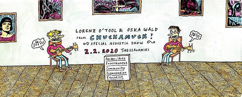 Oι Oska Wald και Lorenz O’tool από τους Chuckamuck έρχονται από το Βερολίνο στη Θεσσαλονίκη, το βράδυ της Κυριακής στο Apodec για ένα σπέσιαλ ακουστικό σόου που μπλέκουν μισικάρες με ρομπότ της αγάπης, εξωγήινους, νεανικό ερωτισμό και μπάρες σοκολάτας.