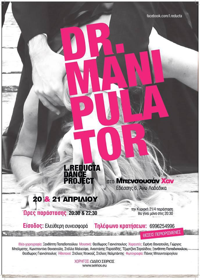 Ο Dr. Manipulator ανακοινώνει στον βοηθό του ότι θα οργανώσει ένα πάρτι, μία δεξίωση. Μ’αυτόν τον τρόπο θα τού δοθεί η ευκαιρία να συγκεντρώσει κόσμο ώστε να μπορέσει να ολοκληρώσει το παιχνίδι του. Η δεξίωση ξεκινάει, o Dr. Manipulator και ο βοηθός του αρχίζουν να παίζουν με τους εκλεκτούς καλεσμένους, κι ενώ όλα δείχνουν να κυλούν ομαλά, σιγά σιγά τα όρια γίνονται δυσδιάκριτα και η κατάσταση οδηγείται στο χάος. «Το Bensousan Han φιλοξενεί ξανά την ομάδα l.reducta dance project σε μία ανατρεπτική performance!