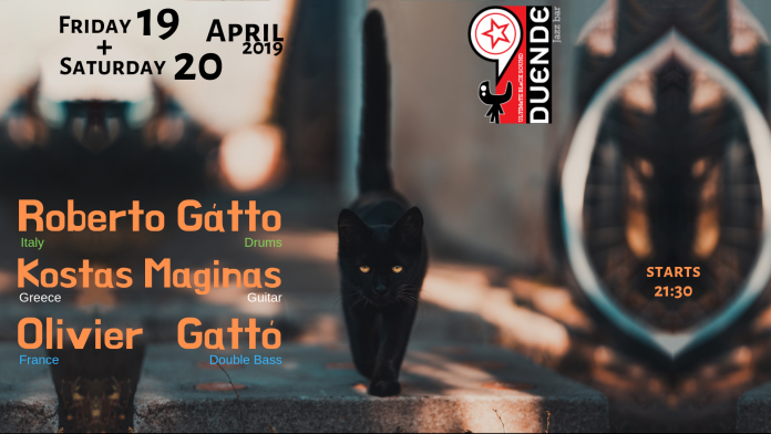 Δύο δεκαετίες σχεδόν μετά την αλησμόνητη σύμπραξή τους στο κουαρτέτο του Lee Konitz, στη μοναδική του εμφάνιση στη Θεσσαλονίκη, και κάτι παραπάνω από 15 χρόνια από την τελευταία κοινή τους εμφάνιση στην πόλη μας, το τρίο των Roberto Gatto, Κώστα Μαγγίνα και Olivier Gatto, συναντιέται και πάλι για δύο μοναδικές συναυλίες στη σκηνή του Duende Jazz Bar. Roberto Gatto – Drums Olivier Gatto – Double Bass Κώστας Μαγγίνας – Guitar