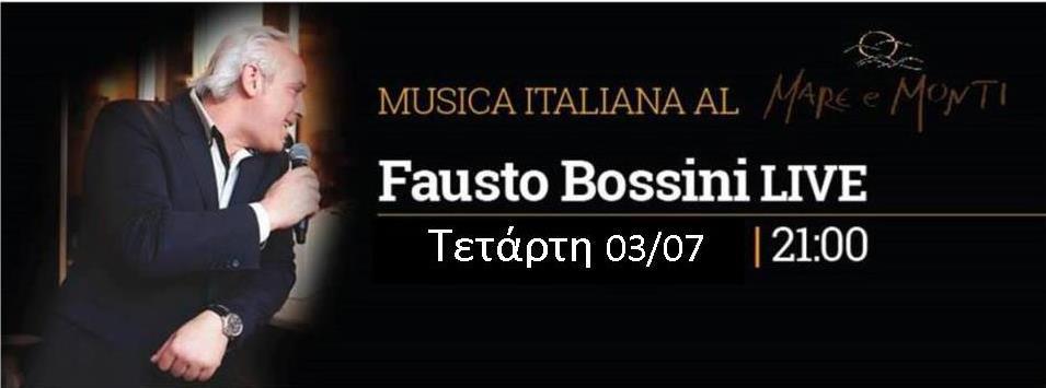 O Ιταλός τραγουδιστής Fausto Bossini με την απίστευτα μελωδική φωνή του, θα μας παρασύρει σε ένα απίστευτο μουσικό ταξίδι, την Τετάρτη 3 Ιουλίου στο Mare e Monti.