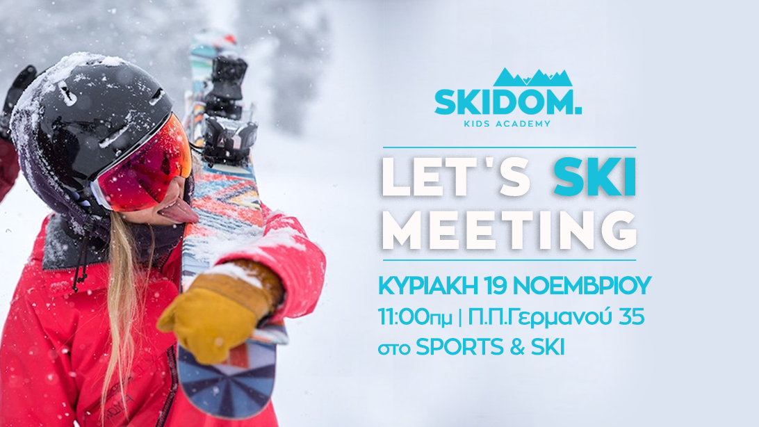 Η Skidom προσκαλεί όλους τους γονείς να γνωρίσουν τον κόσμο της, την Κυριακή 19 Νοεμβρίου στην Π.Π. Γερμανού 35 στο Sports & Ski. Στις 11:00 το πρωι θα γίνει η παρουσίαση της νέας παιδικής ακαδημίας, των στόχων και της φιλοσοφίας της και η ενημέρωση για τα προγράμματα της νέας χιονοδρομικής χρονιάς.
