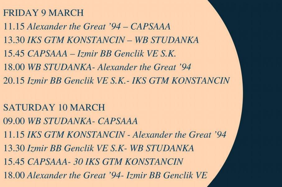 *Οι αναμετρήσεις ξεκινούν στις 9.00 και ο τελευταίος αγώνας ξεκινά στις 20.00