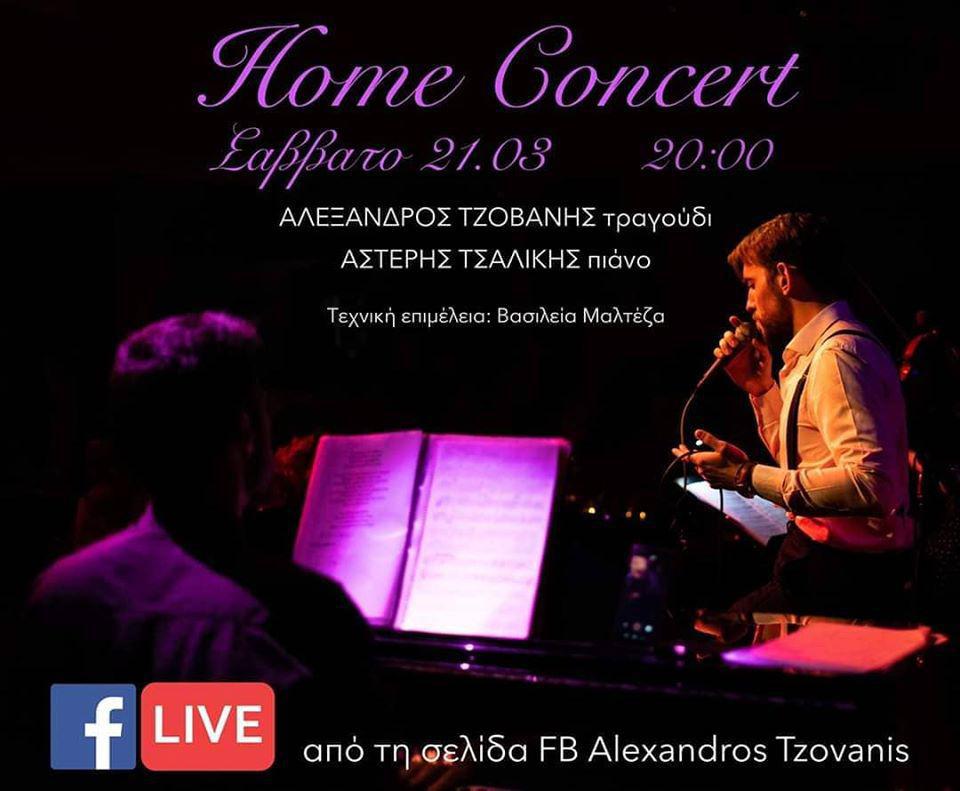 Μένουμε σπίτι, αλλά μένουμε και δημιουργικοί, αισιόδοξοι και δυνατοί λένε στο μήνυμά τους ο Αλέξανδρος Τζοβάνης και ο Αστέρης Τσαλίκης που θα επιχειρήσουν να μπουν στα σπίτια μας το προσεχές Σαββατόβραδο, στήνοντας το πρώτο Home Concert της πόλης όπως αναφέρουν.