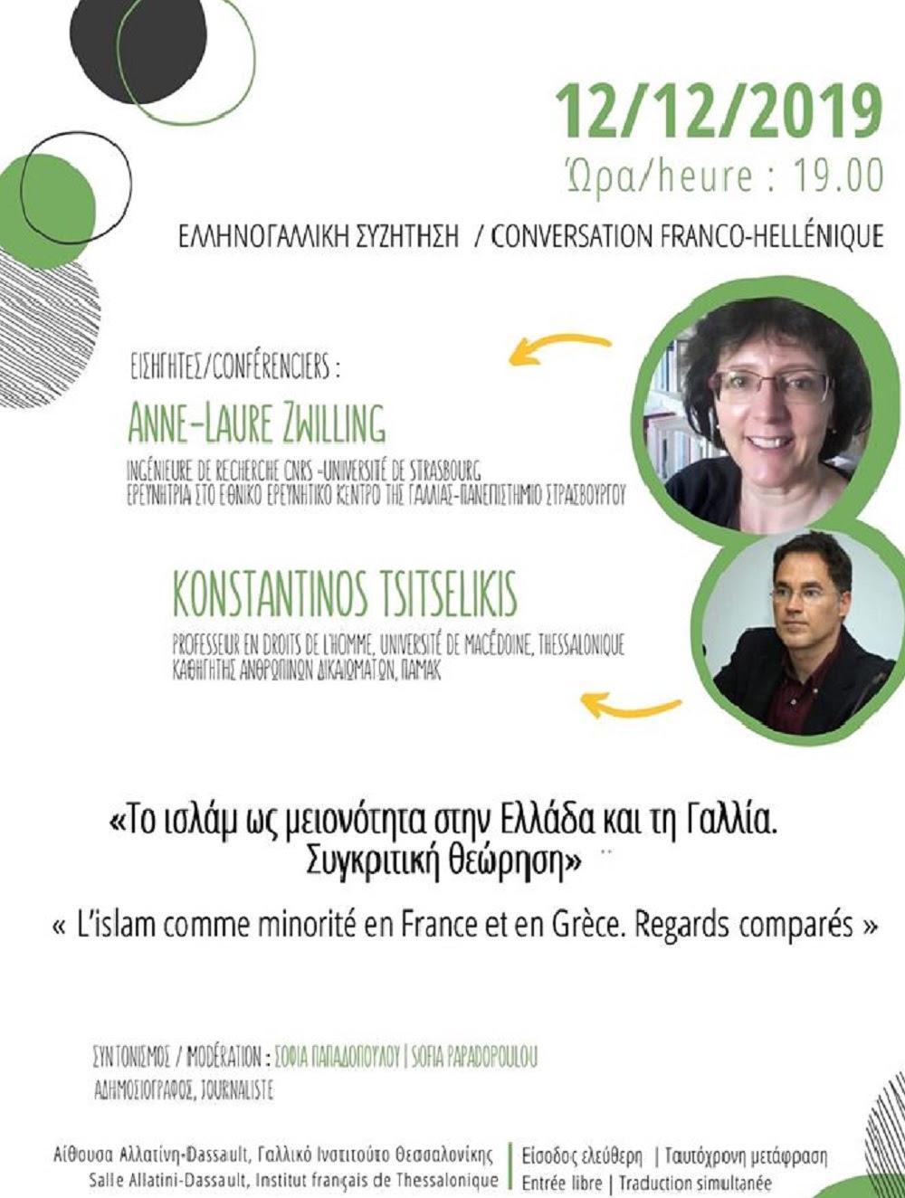 – Κωνσταντίνος Τσιτσελίκης, Καθηγητής Ανθρωπίνων δικαιωμάτων, ΠΑΜΑΚ «To ισλάμ στην Ελλάδα, μεταξύ μειoνοτικής προστασίας και δικαιωμάτων του ανθρώπου» – Anne-Laure Zwilling, Eρευνήτρια στην κοινωνικο-ανθρωπολογία των θρησκειών, Εθνικό Κέντρο Έρευνας Γαλλίας, Στρασβούργο «Το ισλάμ στη Γαλλία, μια ειδική θρησκευτική μειονότητα»