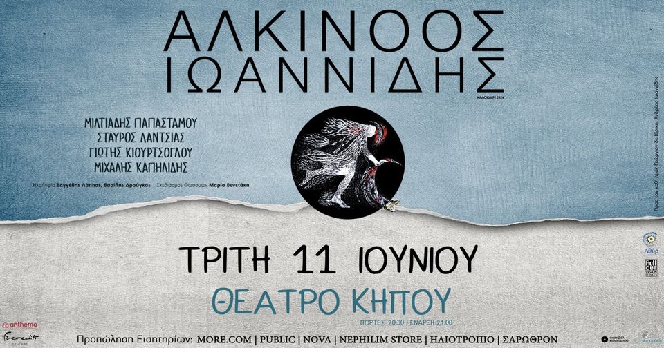 Love Light Productions & Αθύρ υπερήφανα παρουσιάζουν: ΑΛΚΙΝΟΟΣ ΙΩΑΝΝΙΔΗΣ full band ζωντανά στη Θεσσαλονίκη ΤΡΙΤΗ 11 ΙΟΥΝΙΟΥ | ΘΕΑΤΡΟ ΚΗΠΟΥ (Νικολάου Γερμανού 5, έναντι ΧΑΝΘ) οι πόρτες ανοίγουν στις 20.00 | έναρξη 21.15