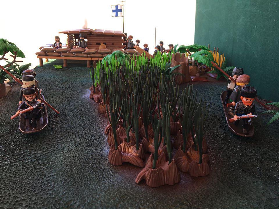 «Παρουσιάζω ένα διόραμα που έχει να κάνει με τα Μυστικά του Βάλτου, μια καθημερινή ημέρα στη λίμνη των Γιαννιτσών το 1907, με την καλύβα, την Κούγκα, τις πλάβες που βγαίνουν για περιπολία και φροντίζουν να μην πέσουν σε βουλγαρική μπρουσκάδα (ενέδρα), ενώ στην άλλη όχθη υπάρχει το οθωμανικό ιππικό των νεότουρκων, που καιροφυλακτεί», σημειώνει ο κ. Πανταζόπουλος, ο οποίος κατασκεύασε το περίτεχνο διόραμα με τη βοήθεια της συζύγου του και του Θεοφάνη Καμπάνη, μέλους επίσης της ομάδας Playmofriends Thessaloniki.