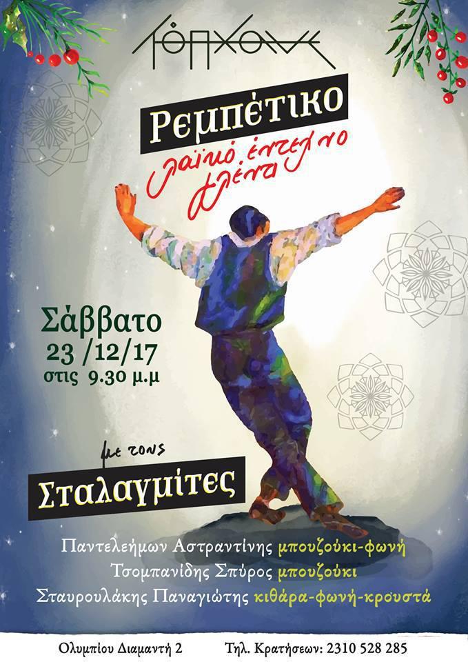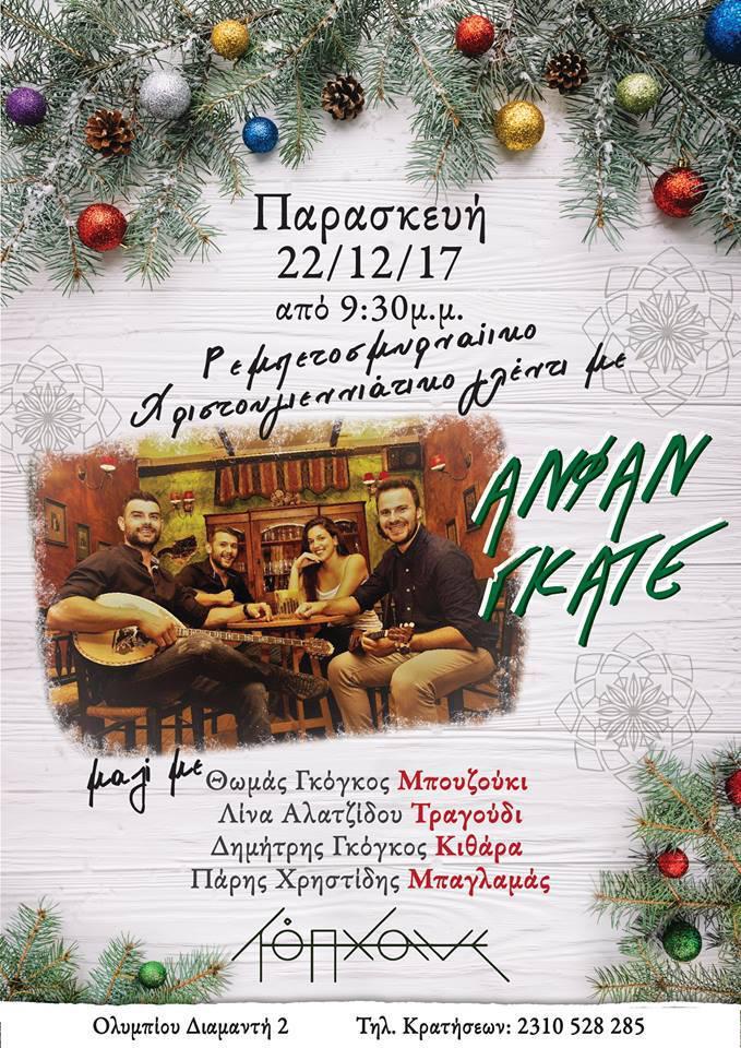 *Σάββατο 23 & Κυριακή 24 Δεκεμβρίου 2017. Έναρξη 21:30. Είσοδος: 12€ προπώληση / 15 ταμείο. Πληροφορίες/Κρατήσεις: 2310 252704 & 6988554828
